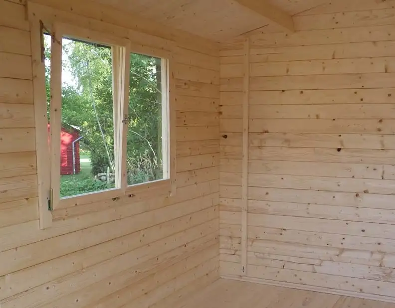 Durch den einseitigen Anstrich verdreht sich das Holz, bzw. es zeigt sich eine Bogenbildung. Dadurch können die Bohlen nicht vollumfänglich sacken. Es ist also besonders wichtig das Haus sowohl von außen als auch von innen zu streichen.